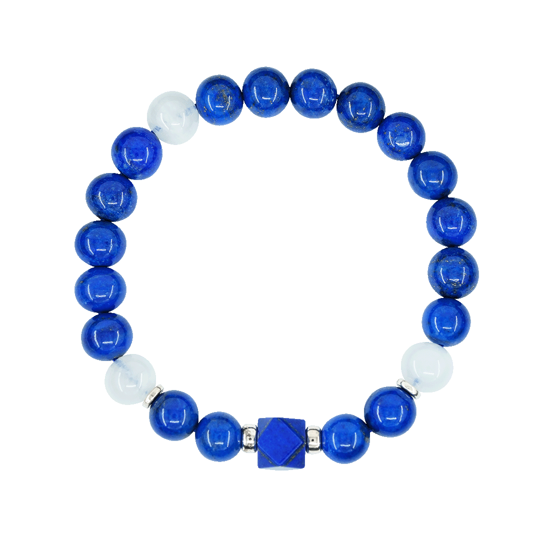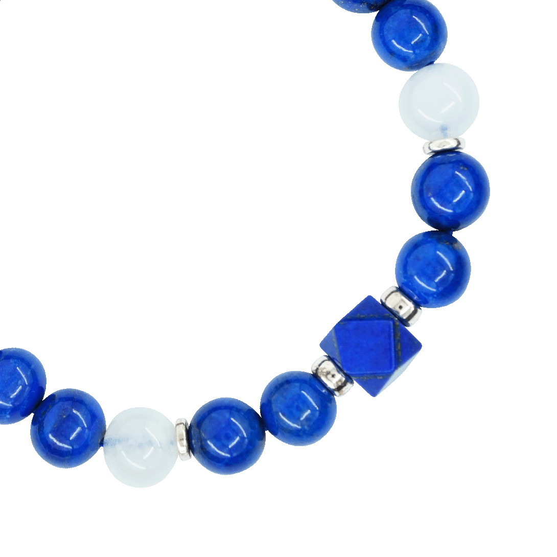 Wie ein klarer Nachthimmel umschmeichelt das Ciel Étoilé Armband dein Handgelenk. Die tiefblauen Lapis-Lazuli-Kugeln – historisch als Symbol für Weisheit, Wahrheit und spirituelle Kraft verehrt – werden von weißen Bergkristallen und handpolierten Silberkugeln ergänzt, die wie funkelnde Sterne wirken.