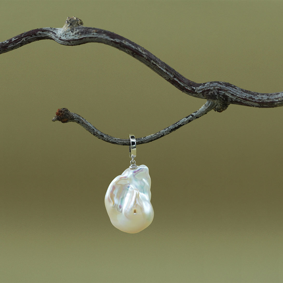 Wie flüssiges Licht, das aus dem Meer aufsteigt –die „Lumière d’Océan“ fängt Bewegung, Farbe und Tiefe in einer einzigen, großen Barockperle ein. Jede Perle ist ein Unikat, geformt von der Natur, mit einem sanften, schillernden Glanz, der in allen Farben des Lichts tanzt.