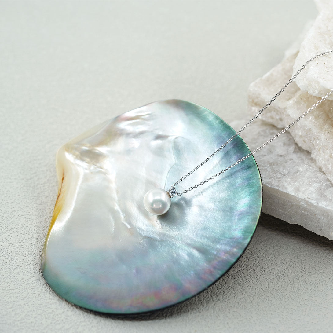 Wie ein winziger Stern, der durch die Nacht zieht, funkelt die „Étoile Filante“ sanft auf deiner Haut. Der einzelne 10 - 11 mm Süßwasserperlen-Anhänger strahlt in perfekter, runder Form, während ein zarter, funkelnder Zirkonia-Akzent ihn wie einen flüchtigen Sternenhauch umspielt.