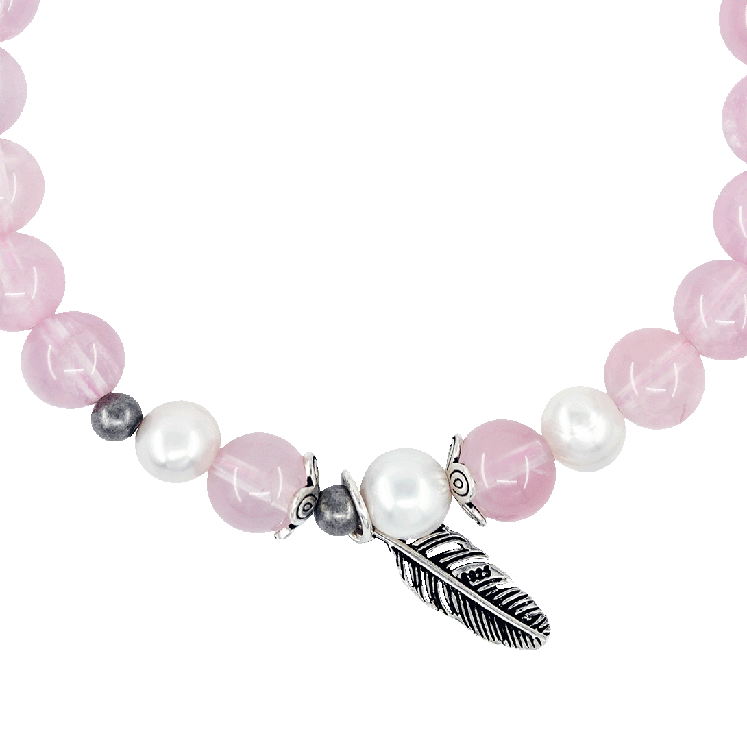 Jeder Stein und jede Perle trägt natürliche Energie. Die Kombination aus Rosenquarz, Perlen und Silberblättern schenkt Ruhe, Harmonie und feminine Schönheit. Ein Schmuckstück, das nicht nur bezaubert, sondern auch innere Wärme schenkt – für dich selbst oder einen geliebten Menschen.