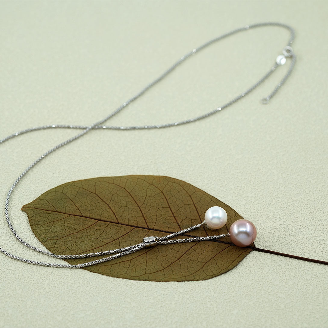 Am Ende der Kette sitzt eine ausgewählte Süßwasserperle – rund, organisch-barock oder zwei harmonisch aufeinander abgestimmte Perlen in unterschiedlichen Farben. Jede Perle wird von Hand geprüft, um ihre natürliche Schönheit, Einzigartigkeit und Lebendigkeit zu gewährleisten.